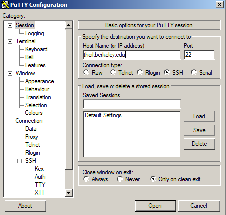Under “Category” on the left, click on Session. Under Saved Sessions, select a name for the session and click on “Save”.